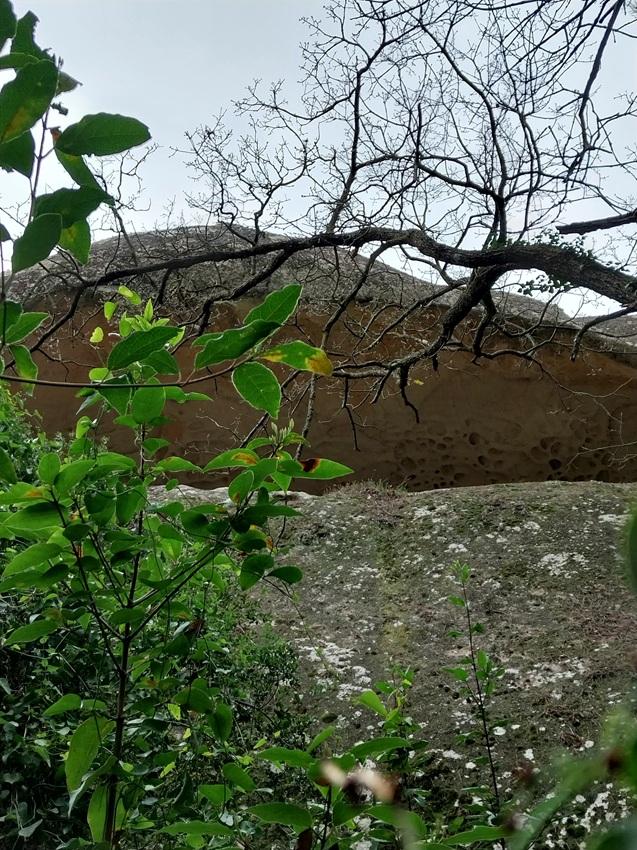 Une trentaine de personnes se sont retrouvées pour découvrir une curiosité géologique les grès de Saint Anne d'Evenos. Amalgame de roches érodées, avec des monticules aux formes parfois amusantes, comme la carapace d'une tortue... Ces monticules creusés par le vent, le soleil et la pluie, forment des cavités, des grottes (appelées aussi taffonis). Certains grès se retrouvent ainsi creusés de petits trous un peu comme du gruyère...