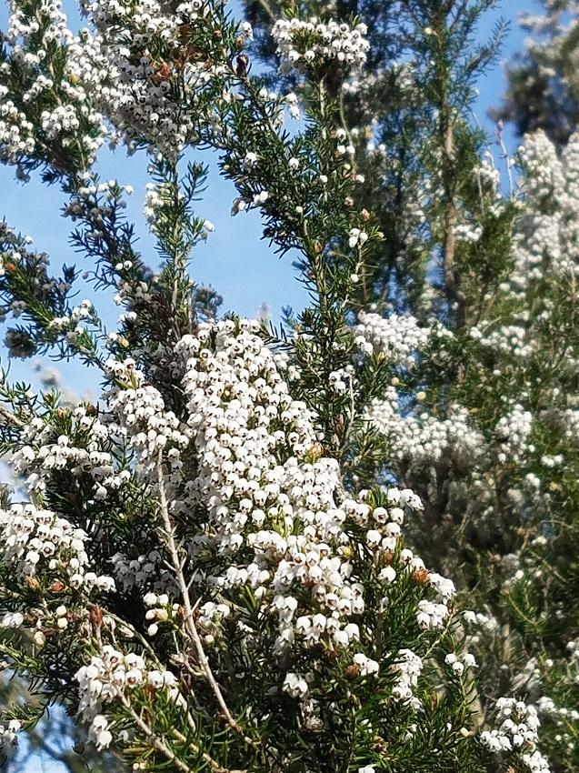 Sur le talus les premières orchidées sauvages de la saison se reconnaissent par leur tige robuste et leurs fleurs violacées Ce sont les "Barlie de Robert" plus loin nous observons les lentiques pistachiers arbustes à feuilles persistante qui donnent des fruits rouges, des bruyères à fleurs blanches ainsi qu'une végétation persistantes en hiver...